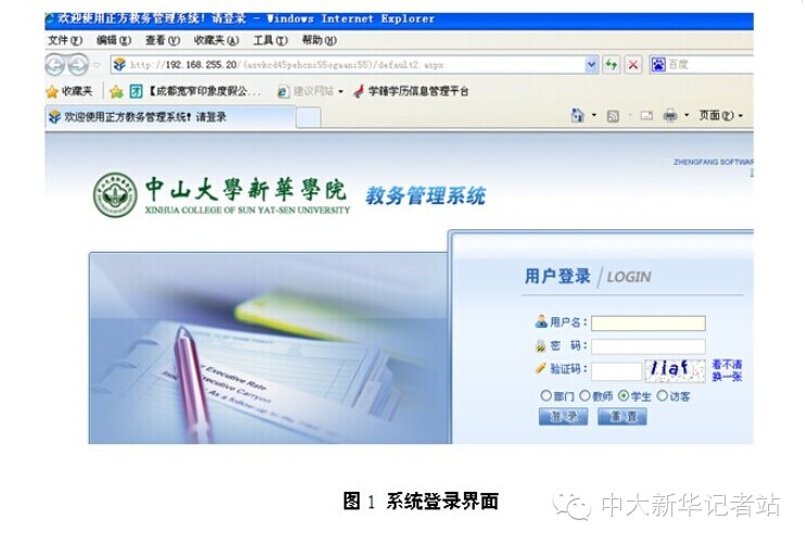 登录教务系统(外网:http://jw.zdxh.cn内网:http://192.168.255.51或http://192.168.255.20),进入用户登录界面。输入学号及密码(密码默认均为学号,请登录后及时更改,以防他人篡改),选择“学生”角色,按“登录”。(请各位同学不要忘记关闭所有开启的窗口,以防他人进入,造成不良后果!)